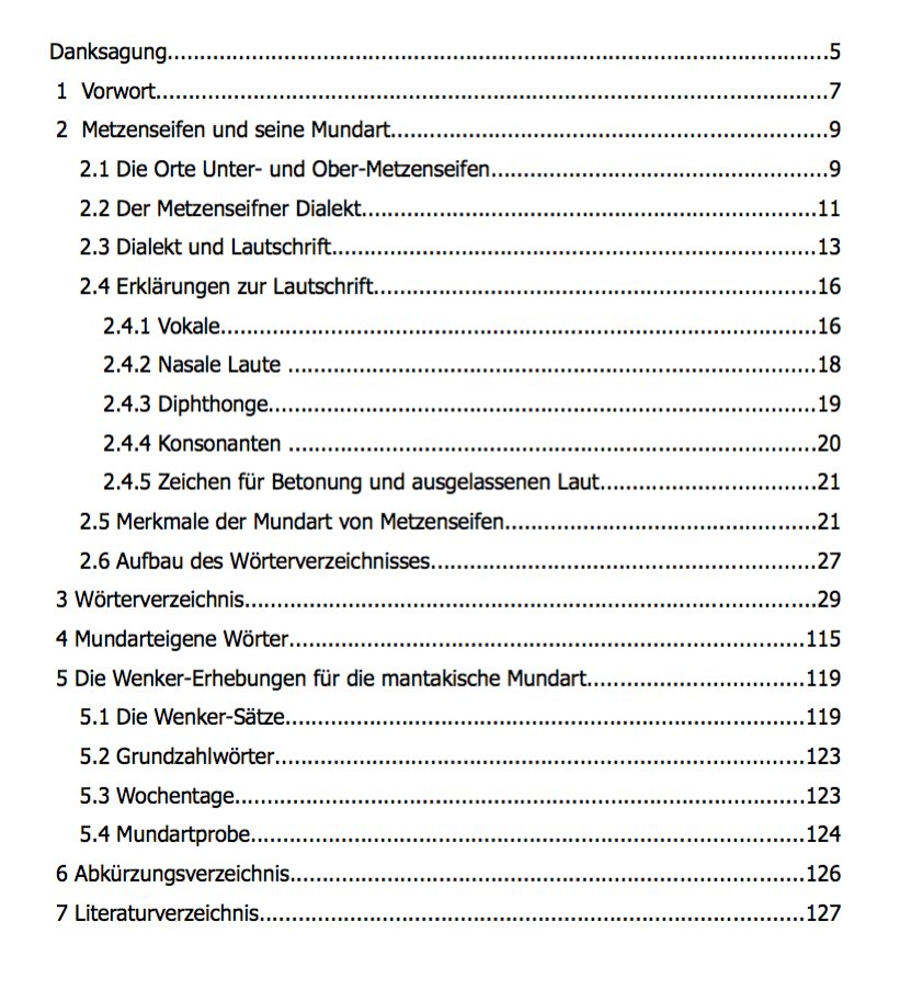 Wörterbuch der deutschen Mundart in Metzenseifen?