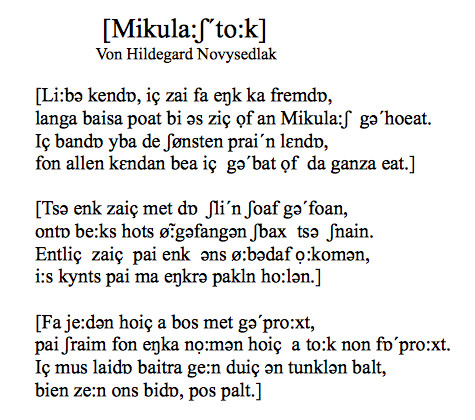 | 6 | [15] | Zum Neuen Jahr (Version des mantakischen Neujahrsspruchs, Metzenseifner Dialekt) |